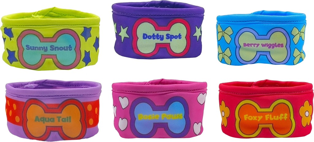 Κάθε κουταβάκι ξεχωρίζει για το στυλ και την προσωπικότητά του και συνοδεύεται από το δικό του μπολάκι, αυτοκόλλητα και ένα κολάρο που μετατρέπεται σε αξεσουάρ για τα μαλλιά .