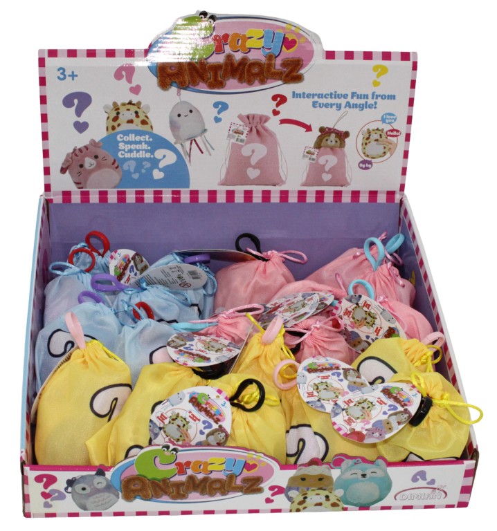 Τα Crazy Animalz είναι μια υπέροχη συλλογή με 8 χαριτωμένα λούτρινα ζωάκια, το καθένα κρυμμένο μέσα σε μια χρωματιστή τσαντούλα - ροζ, κίτρινη ή γαλάζια!